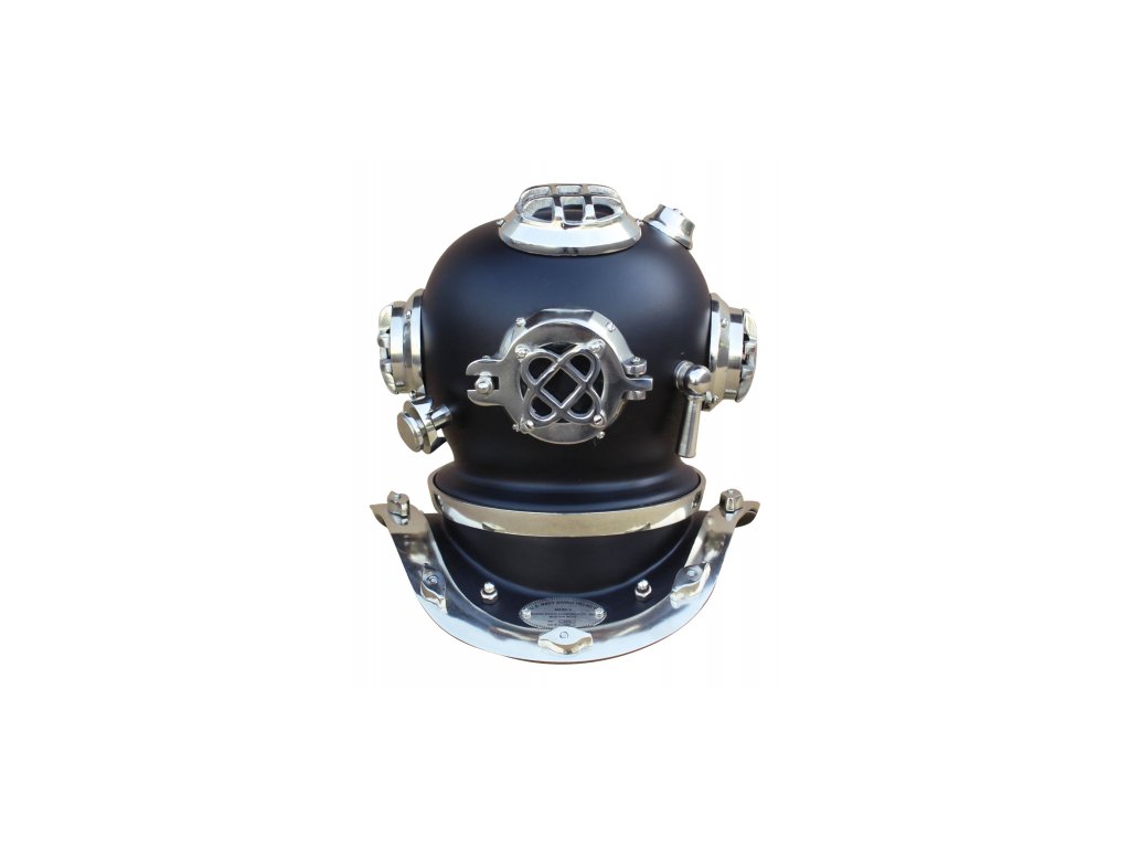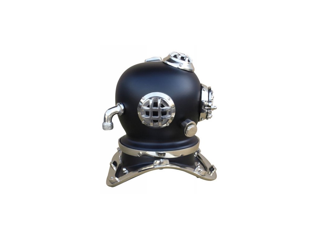 Poniklovaná replika potápěčské helmy.